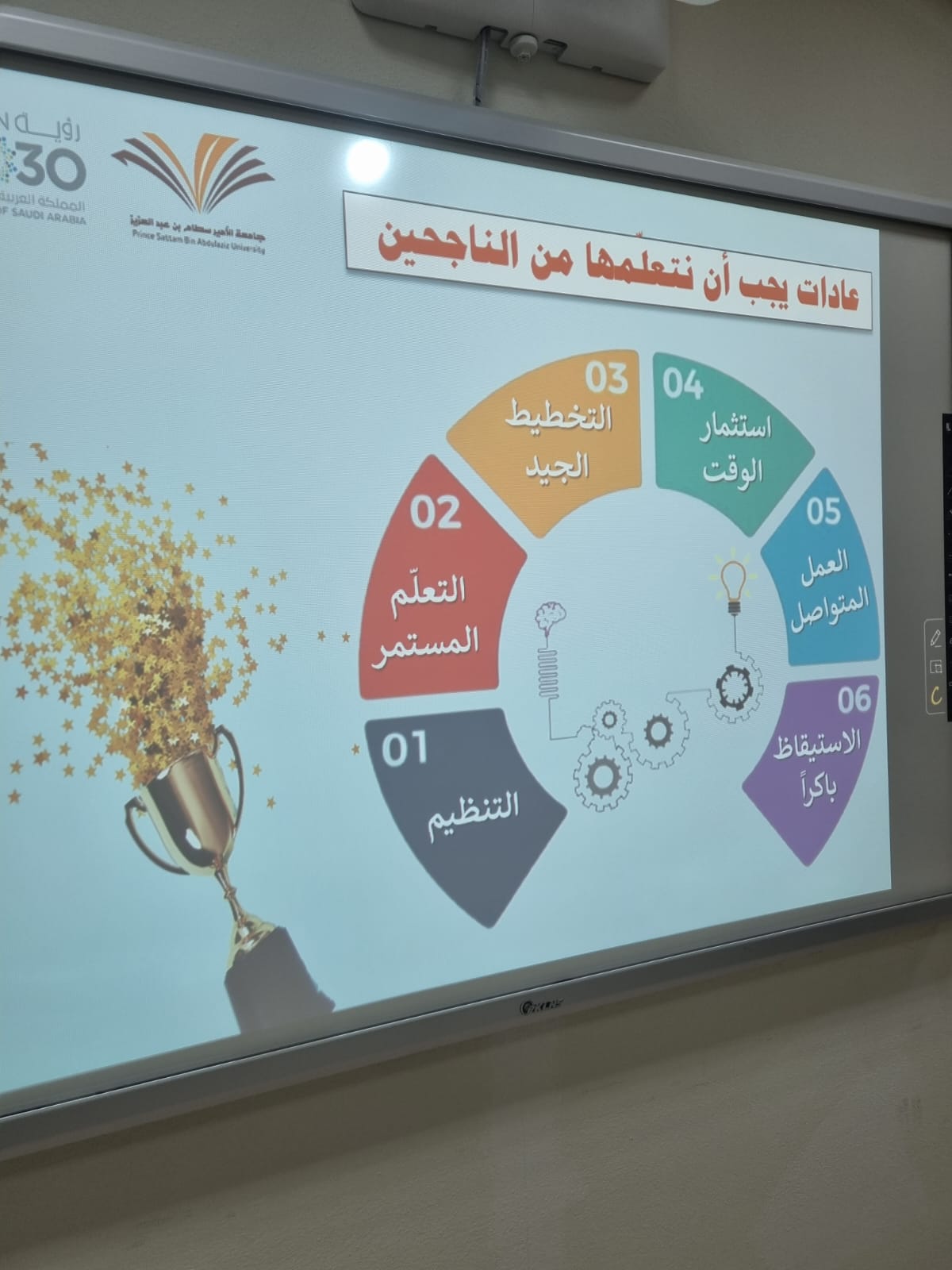بالتعاون مع كلية العلوم والدراسات الإنسانية بحوطة بني تميم أقامت كلية العلوم والدراسات الإنسانية بالخرج (أقسام الطالبات) ممثلة في وحدة العلاقات العامة دورة بعنوان (كبسولة النجاح) وذلك في يوم الثلاثاء الموافق 29/3/1444هـ في تمام الساعة التاسعة صباحًا في قاعة التدريب.