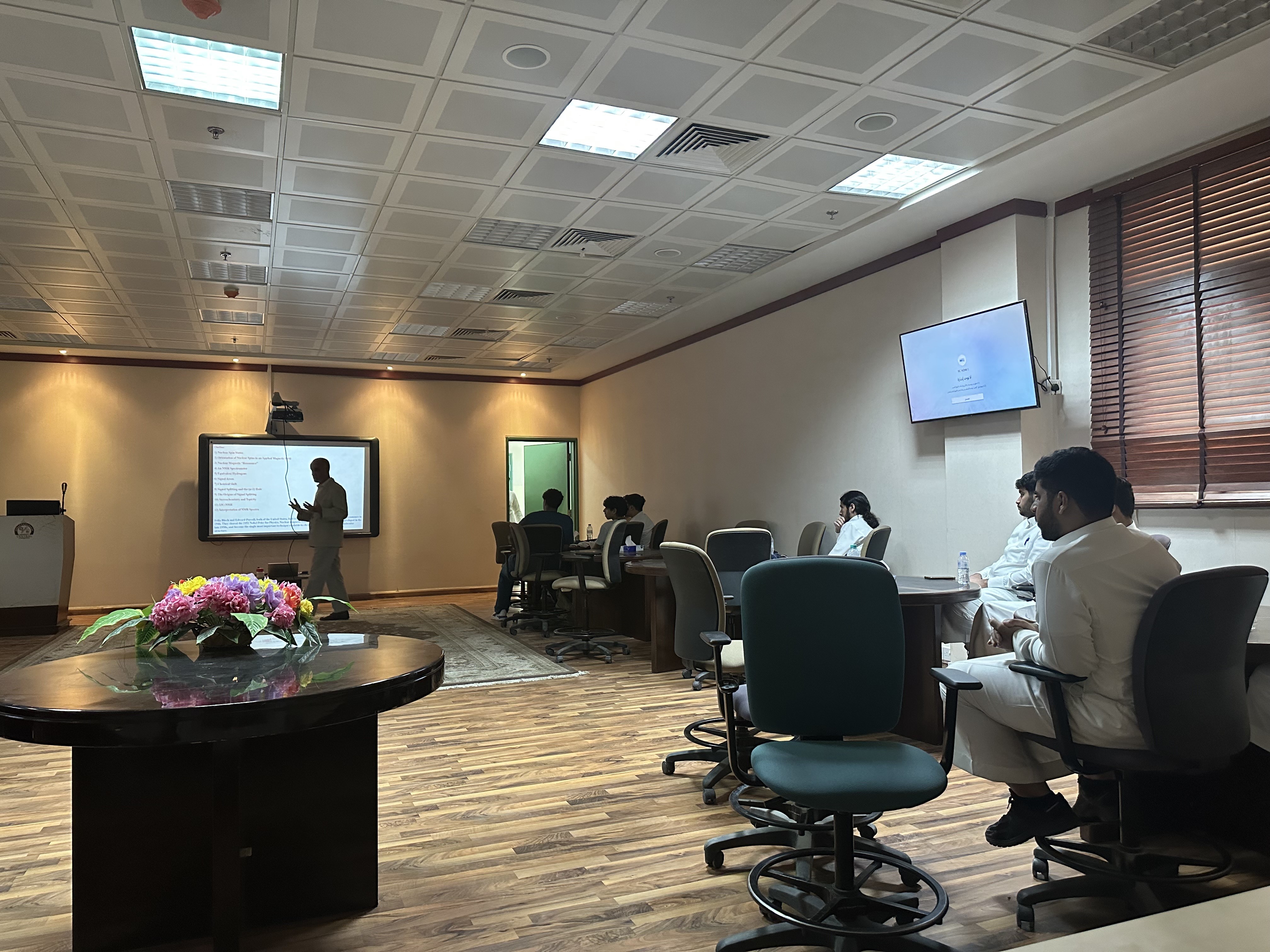 حيث قام الدكتور أحمد البشير أستاذ مشارك الكيمياء العضوية بالقسم بشرح لجهاز الرنين المغناطيسي ولقد تضمن الشرح النقاط الأتية:
