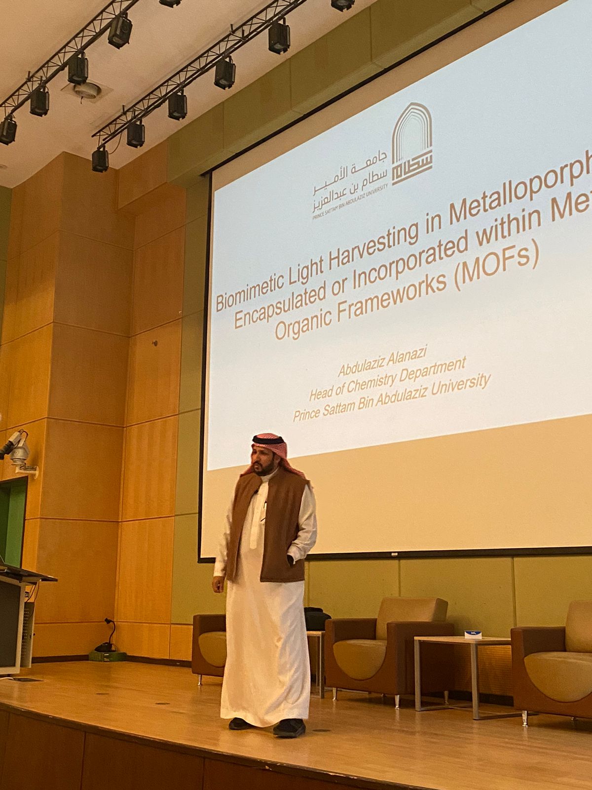 والتي كانت بعنوان: Porphyrin Incorporated Within Metal Organic Frameworks (MOFs)حيث قام بتقديمها الدكتور عبد العزيز بن عبد الحميد