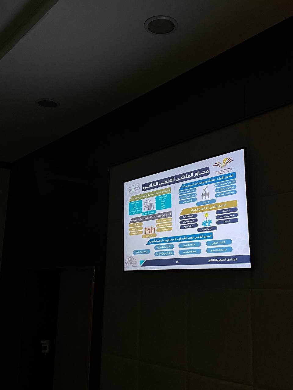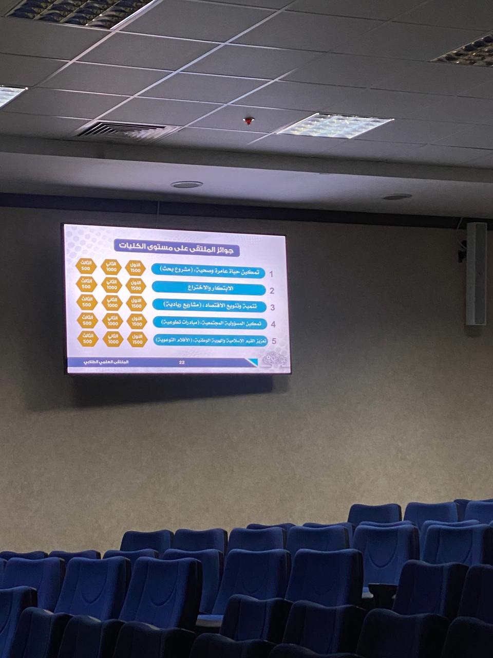 أقام قسم اللغة الإنجليزية في كلية العلوم والدراسات الإنسانية بالخرج (أقسام الطالبات) لقاءًا تعريفيًا للملتقى العلمي للعام الجامعي 1444هـ وذلك في يوم الاثنين الموافق 22/3/1444هـ ومن إشراف وتقديم الأستاذة تهاني شراحيلي في مسرح الكلية.