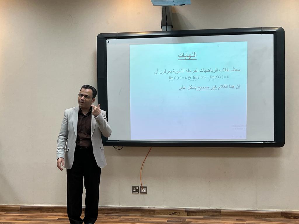 حيث كانت الورشة من تقديم كل من الدكتور محمد عوض والدكتور عبد الكريم حمارشة منسق لجنة خدمة المجتمع في قسم الرياضيات، وهدفت الورشة إلى تعريف المعلمين والمعلمات على طرق تدريس الرياضيات.