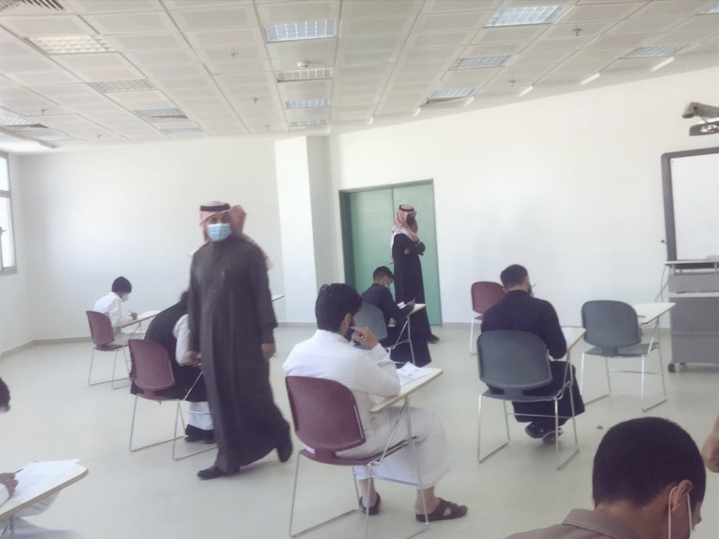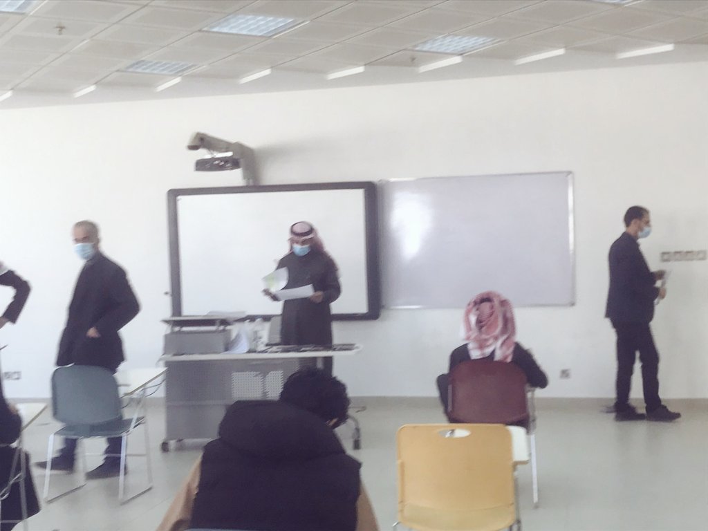 انطلاقًا من حرص سعادة عميد الكلية د. عبد الرحمن بن إبراهيم الحارثي على سير الاختبارات النهائية قام سعادة عميد الكلية صباح اليوم الثلاثاء الموافق ٢١ ديسمبر ٢٠٢١ بجولة تفقدية لقاعات الاختبارات للاطمئنان على أبنائه الطلاب، وشدد سعادته على ضرورة توفير البيئة المناسبة والهادئة داخل القاعات ليتمكن الطلاب من الإجابة في جو من الطمأنينة، كما اطلع سعادته على إجراءات لجنة الاختبارات بالكلية، لرصد الدرجات وتثبيتها، وقد رافق سعادة العميد في جولته سعادة وكيل الكلية للشؤون .التعليمية د. هارون بن ناصر آل صقر