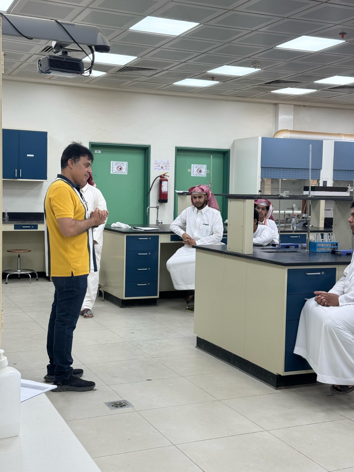 في إطار تفعيل رسالة كلية العلوم والدراسات الإنسانية بالخرج نحو خدمة المجتمع وتزامنًا مع الأسبوع العربي للكيمياء استقبل قسم الكيمياء يوم الأربعاء الموافق 25/10/2023 م وفداً طلابياً من المرحلة الثانوية بمدرسة فرسان الجزيرة وشارك بالزيارة نحو 20 طالباً وكان في استقبالهم رئيس قسم الكيمياء الدكتور عبد العزيز عبد الحميد العنزي بالإضافة إلى بعض من أعضاء هيئة التدريس بالقسم وبعض من أعضاء المجلس الاستشاري الطلابي لقسم الكيمياء.