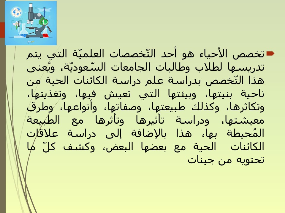 وقد كان اللقاء موجه إلى فئة الطالبات المستجدات ومن تقديم الدكتورة احسان أحمد حسن أستاذ مساعد بقسم الأحياء، وحيث كان الهدف من اللقاء هو تعريف الطالبات بمجالات سوق العمل لتخصص الأحياء والمهارات المرتبطة بالتوظيف.