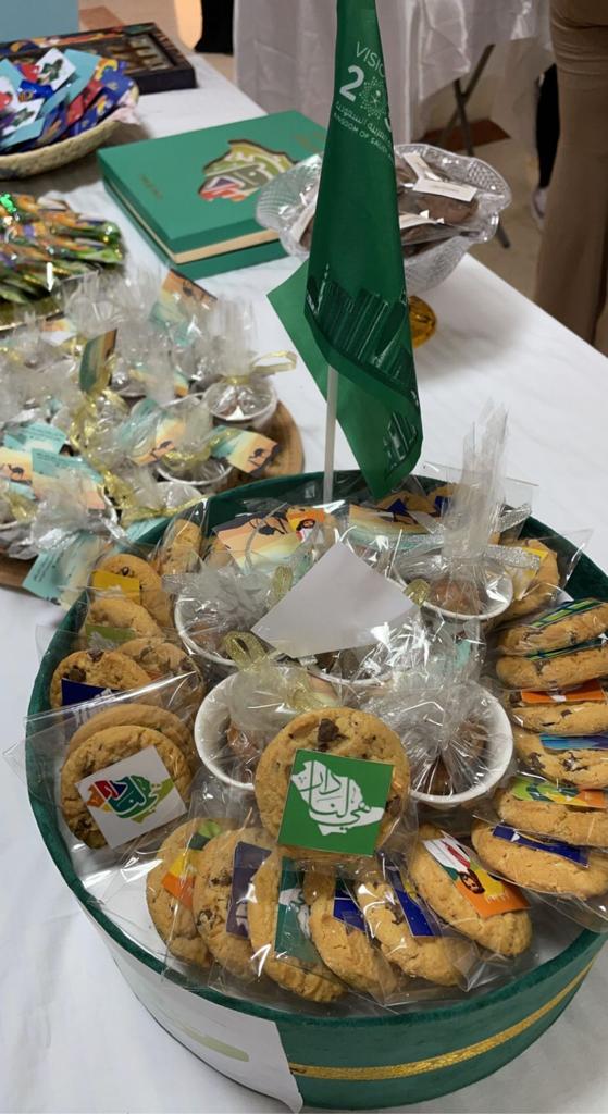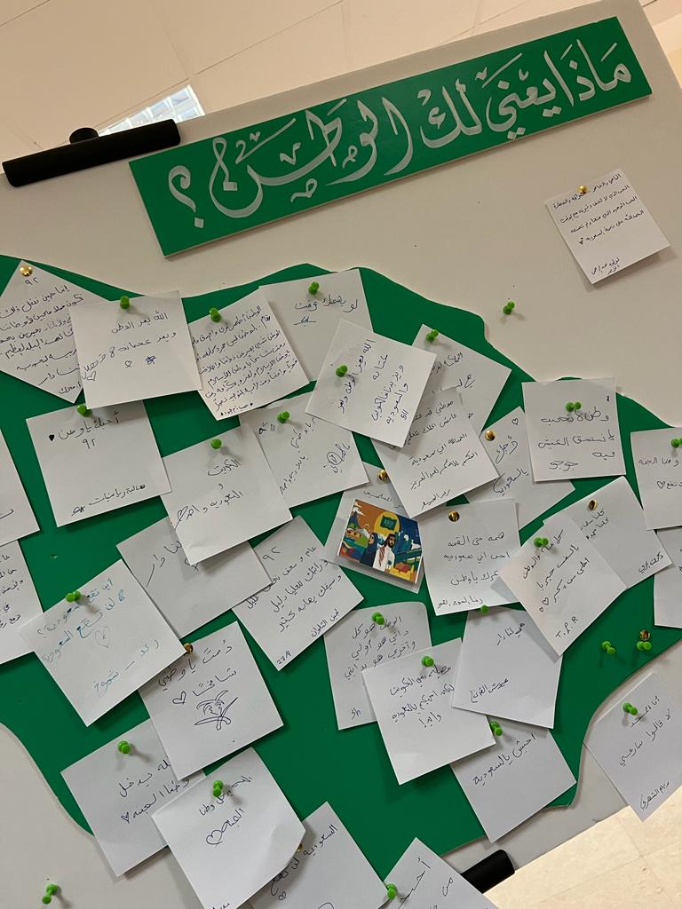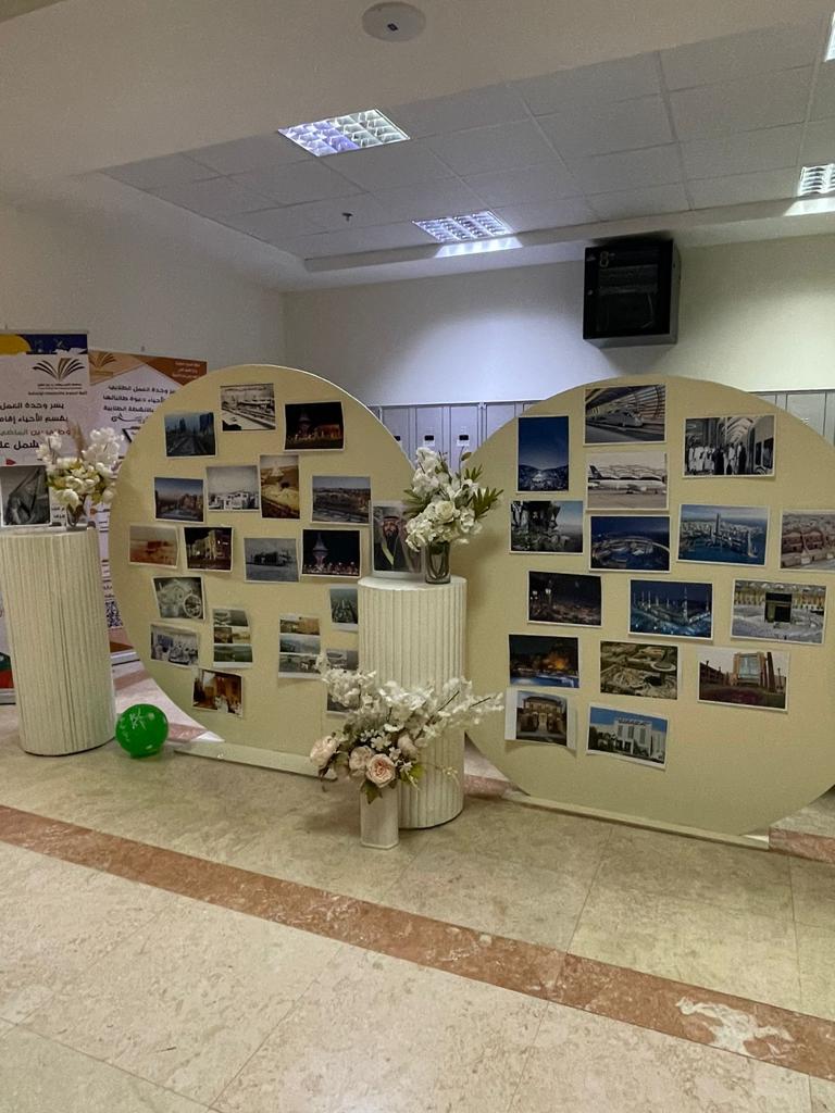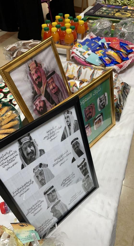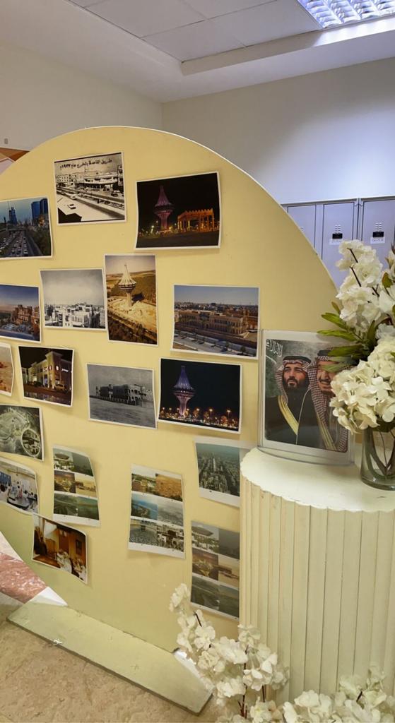 اشتمل المعرض على صور للنهضة العمرانية على عهد الدولة السعودية، وصور لمعالم المملكة العربية السعودية، كما اشتمل المعرض على صور للمشاريع الحديثة كالقطارات ومدينة نيوم، وذا لاين وتطوير مشروع القدية وغيرها من المشاريع المتطورة التي نشهدها في عصر خادم الحرمين الشريفين الملك سلمان بن عبد العزيز آل سعود، كما وضعت ملحمة لأهم معارك الدولة السعودية، وعرض مرئي لإنجازات الوطن وركن لهواة الرسم بمشاركة الطالبات، ولوحة معبرة من كتابات ومشاعر الطالبات للوطن الغالي, وتم توثيق مشاعر الطالبات ومنسوبات الكلية في حائط إلكتروني لليوم الوطني ٩٢ .