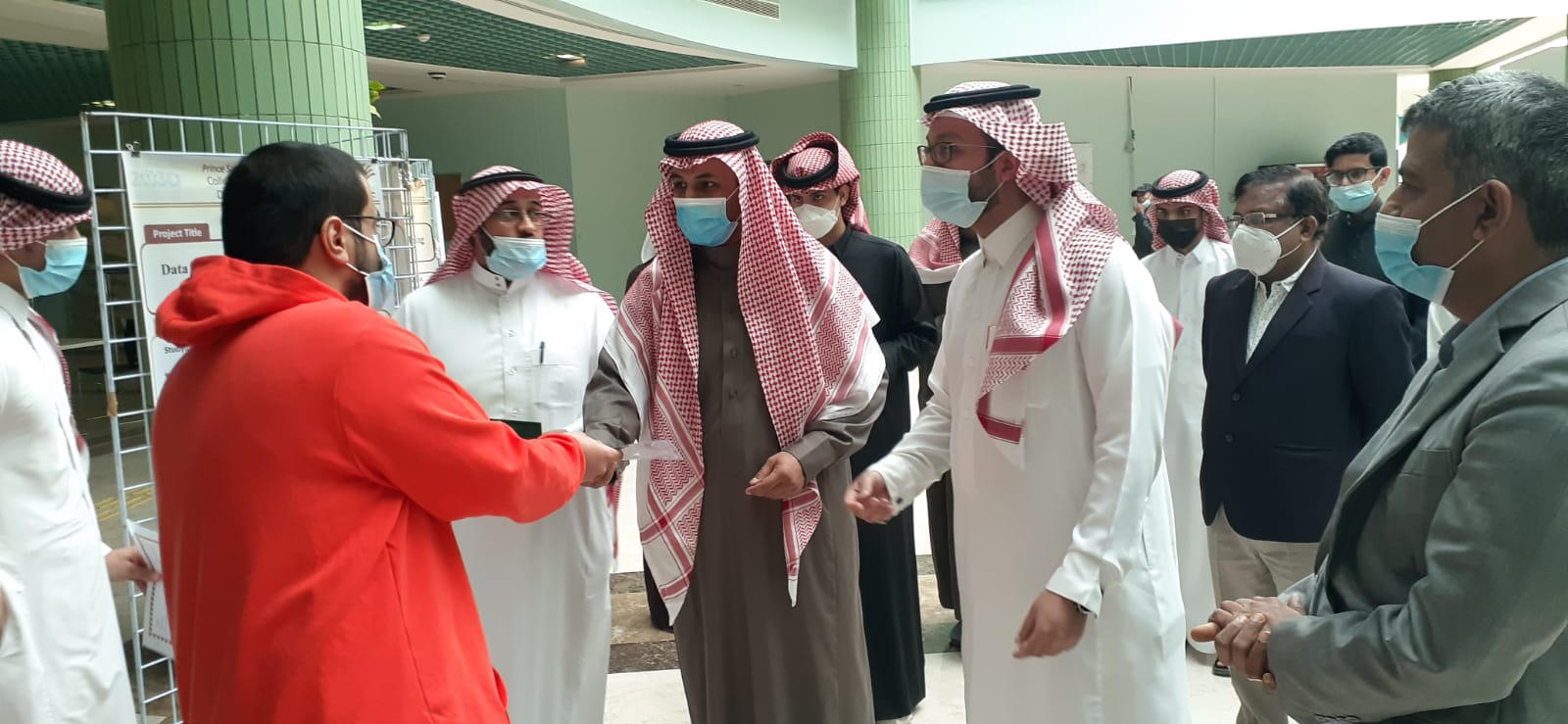 كما استمع باهتمام سعادة العميد ووكلاء الكلية ورؤساء الأقسام والعديد من أعضاء هيئة التدريس لشرح الطلاب لإنتاجهم العلمي، كما تناولوا النقاش والحوار العلمي مع الطلاب حول ما قدموه في مشاريع التخرج، وأبدوا سعادتهم بجودة الإنتاج ومهارة الطرح، وطالبوا الطلاب بأهمية بذل الجهد والاستمرار في تحصيل العلم وضرورة التميز في التخصصات العلمية المختلفة وذلك لبناء جيل واعد يكمل ما بدأه الآباء والأجداد ولتحقيق مستهدفات رؤية 2030.