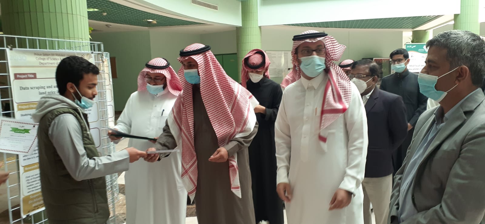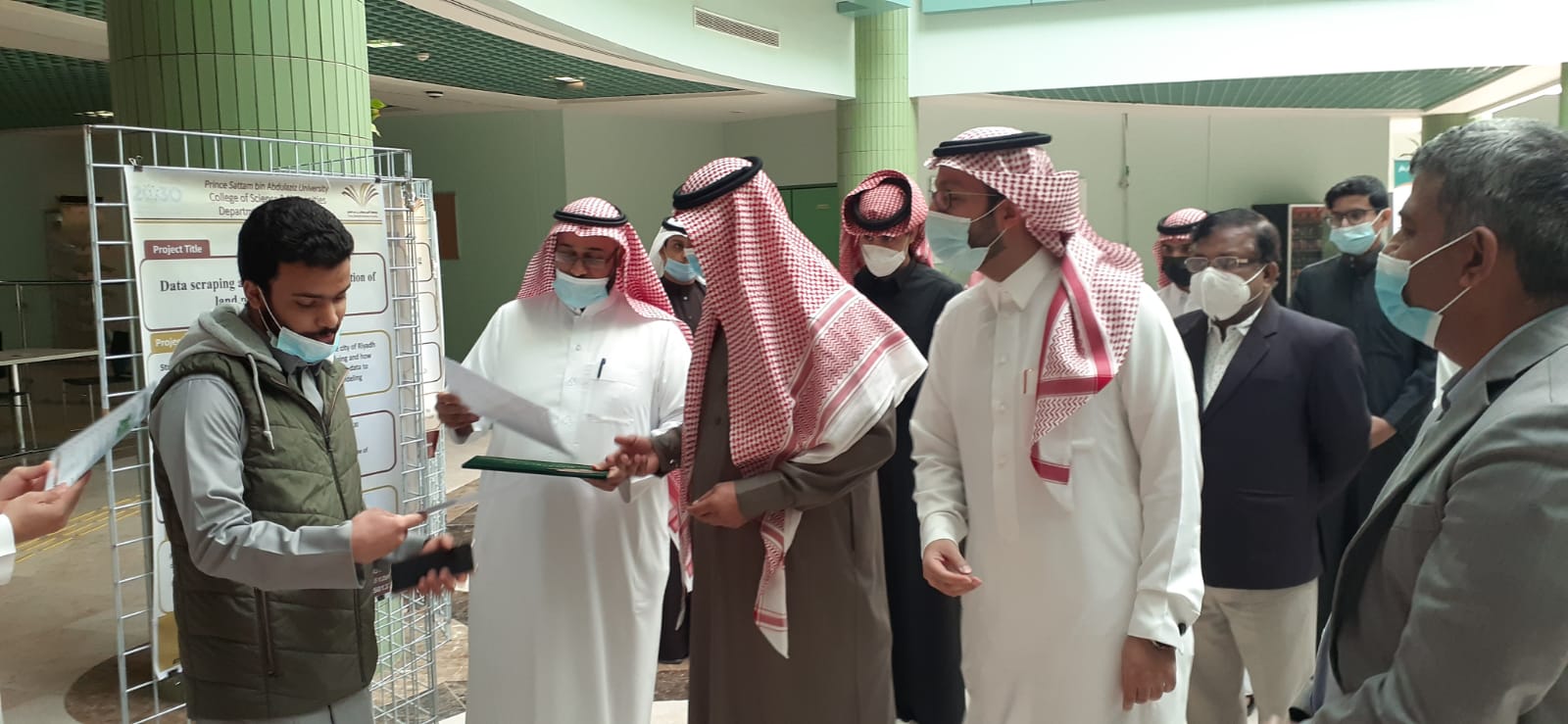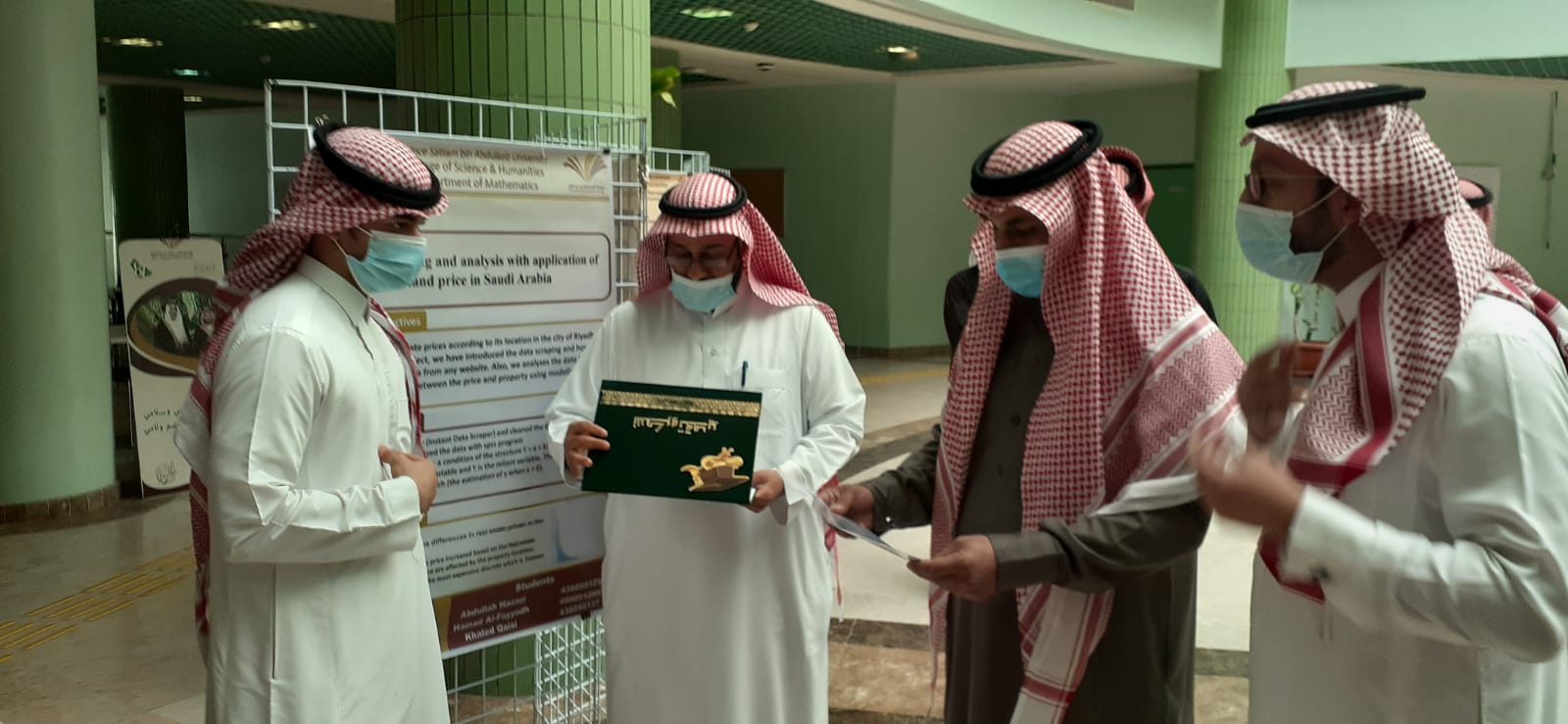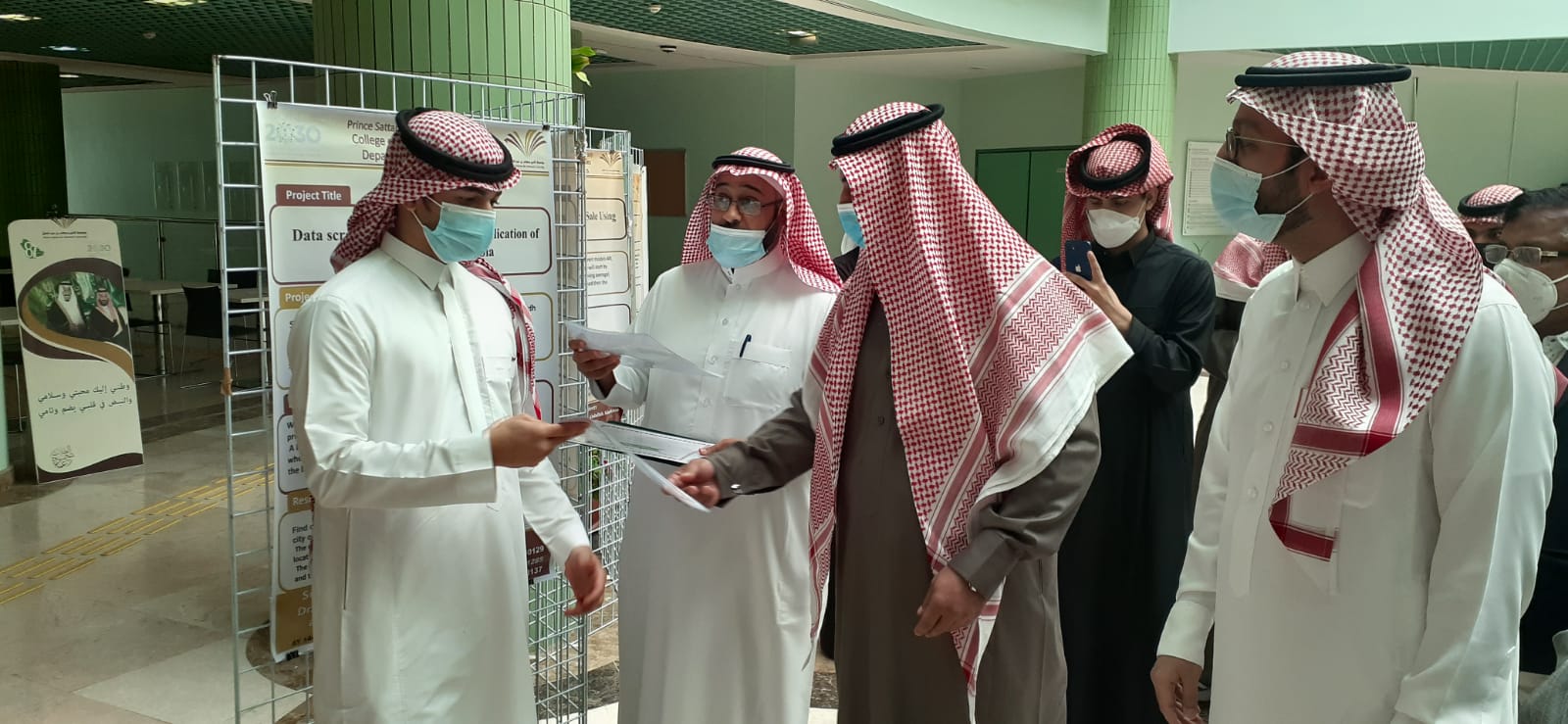 برعاية سعادة عميد كلية العلوم والدراسات الإنسانية بالخرج الدكتور عبد الرحمن الحارثي وحضور سعادة الدكتور هارون بن ناصر آل صقر وكيل الكلية للشؤون التعليمية والأكاديمية وسعادة الدكتور عبد الله بن محمد الدريهم وكيل الكلية للدراسات العليا والبحث العلمي والتطوير والجودة أقامت الكلية في مناخ علمي وذلك في يوم الثلاثاء الموافق 14/12/2021 فعالية يوم الملصق العلمي (Poster Day) حيث قدم الطلاب جهودهم العلمية في مشاريع التخرج.