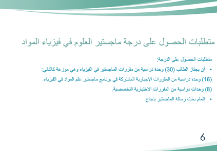 5. متطلبات الحصول على درجة الماجستير.
